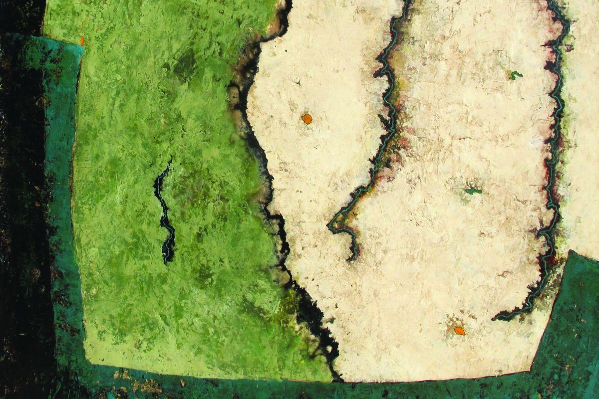 Ma démarche picturale trouve sa route dans les signes, les traces, les indices à demi effacés et les territoires symboliques qui amènent à se questionner sur l’espace de l’entre-deux.
