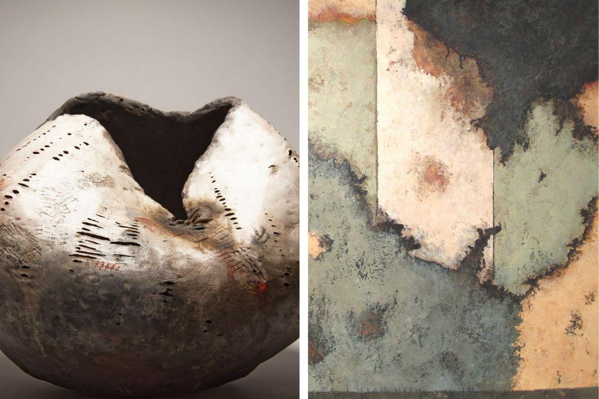 Les tableaux de l'artiste naissent de la superposition de couches de peinture d’épaisseurs diverses, comme autant de souvenirs personnels. Du gris anthracite au violet irisé, des nuances de vert au bleu profond, sa gamme chromatique s’appuient sur des teintes naturelles. Aux frontières de l’abstraction, évoquant fresques anciennes et peintures rupestres, les formes de ses œuvres dessinent les contours d’un univers vibrant et poétique.